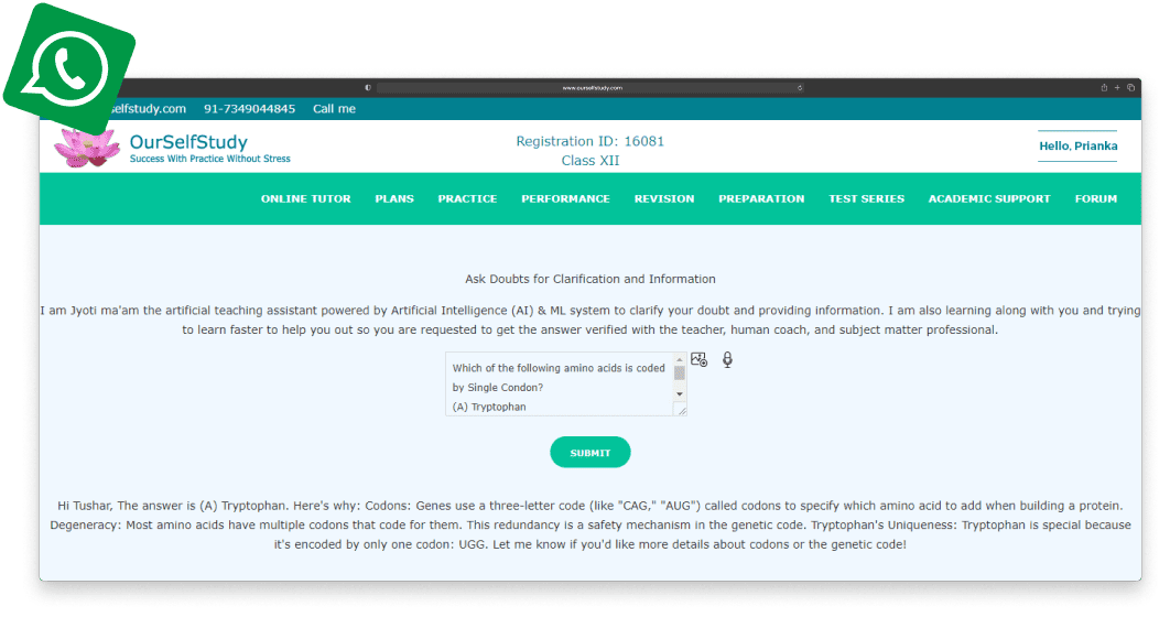 Resolve doubt and understand the concept at any time. Also available via WhatsApp for added convenience, making the it most convenient academic assistant. Ideal for grades IX to XII.